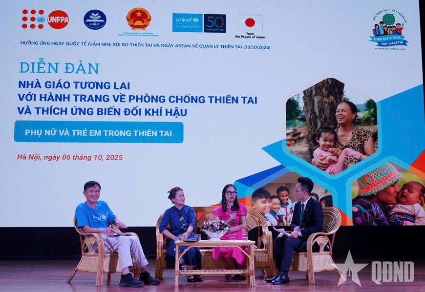 Phụ nữ và trẻ em trong thiên tai là chủ đề của Diễn đàn “Nhà giáo tương lai với hành trang về phòng, chống thiên tai và thích ứng biến đổi khí hậu”, được tổ chức tại Trường Đại học Sư phạm Hà Nội, chiều 6-10. Đây là một trong những hoạt động hưởng ứng Ngày Quốc tế giảm nhẹ rủi ro thiên tai (13-10) năm 2025.