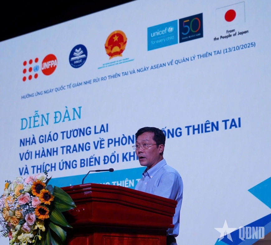 Chủ đề Ngày Quốc tế giảm nhẹ rủi ro thiên tai (13-10) năm nay là “Đầu tư tăng cường khả năng chống chịu để giảm thiểu rủi ro thiên tai”. Song để góp phần tuyên truyền, nâng cao nhận thức cho tuổi trẻ, nhất là đội ngũ sinh viên sư phạm "những nhà giáo tương lai", Cục Quản lý đê điều và phòng, chống thiên tai (Bộ Nông nghiệp và Môi trường) chủ trì, phối hợp với Quỹ Nhi đồng Liên hợp quốc (UNICEF) tại Việt Nam, Quỹ Dân số Liên hợp quốc (UNFPA) Việt Nam và Trường Đại học Sư phạm Hà Nội tổ chức Diễn đàn “Nhà giáo tương lai với hành trang về phòng, chống thiên tai và thích ứng biến đổi khí hậu”, với chủ đề: Phụ nữ và trẻ em trong thiên tai.