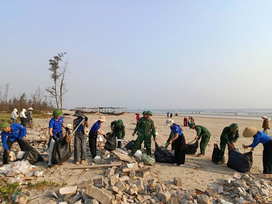 | Tuổi trẻ Hà Tĩnh tham gia vệ sinh môi trường biển. |