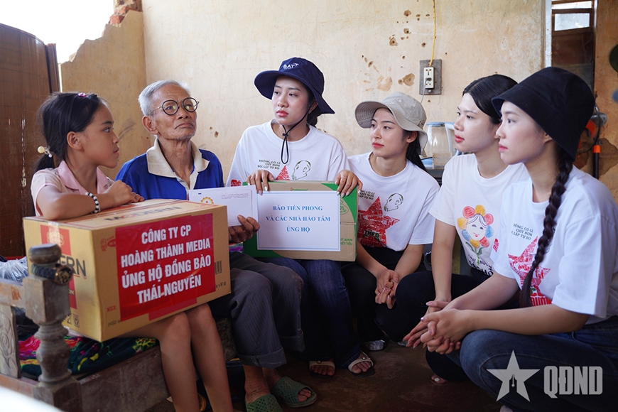 Đi cùng đoàn có Top 3 và Đại sứ Hoa hậu Việt Nam 2024, đại diện Công ty Hoàng Thành Media - đơn vị đồng tổ chức Cuộc thi Hoa hậu Việt Nam của Báo Tiền Phong, và các nhà hảo tâm, các đơn vị doanh nghiệp.