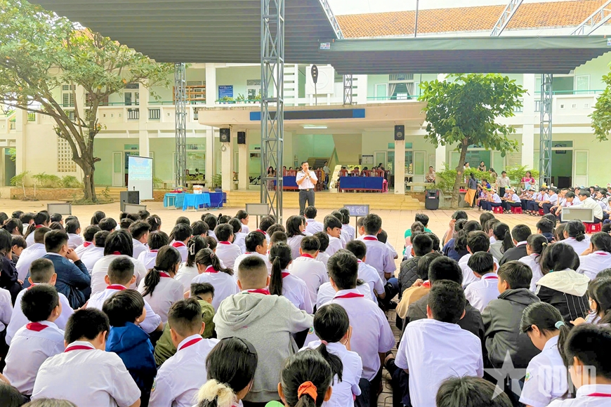 Không chỉ dừng lại ở việc cung cấp kiến thức, buổi tuyên truyền còn lồng ghép giao lưu, trao đổi, trả lời câu hỏi, tạo không khí sôi nổi, giúp học sinh chủ động tiếp cận, tìm hiểu về lịch sử, truyền thống Quân đội và biển, đảo Việt Nam.