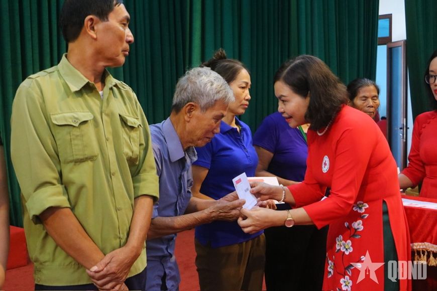 Đại diện Hội Chữ thập đỏ thành phố Hà Nội trao tặng quà tới người có hoàn cảnh khó khăn. |
