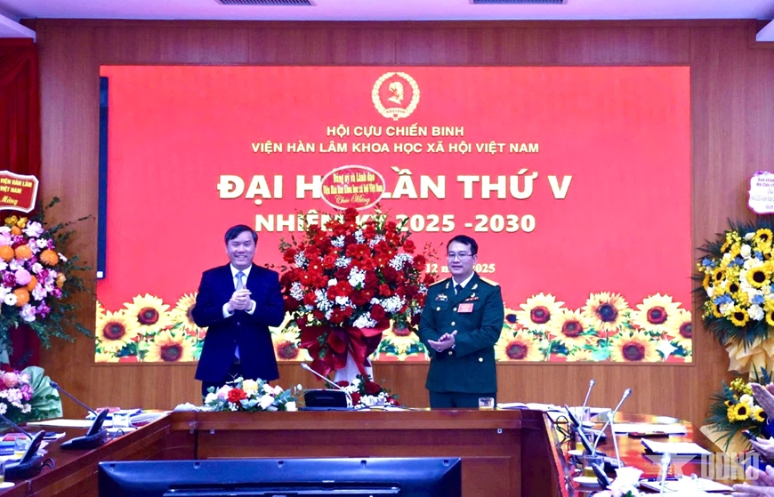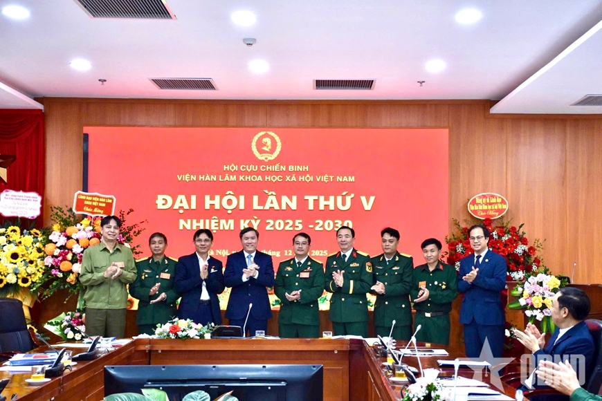 | Đại diện Đảng ủy, lãnh đạo Viện Hàn lâm KHXH Việt Nam và Trung ương Hội Cựu chiến binh Việt Nam chúc mừng Ban chấp hành Hội Cựu chiến binh Viện Hàn lâm KHXH Việt Nam nhiệm kỳ 2025-2030. |