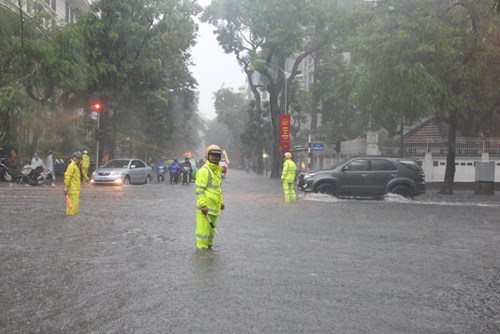 * Theo thông tin từ Phòng Cảnh sát giao thông đường bộ, đường sắt (PC67), Công an thành phố Hà Nội, trước tình trạng mưa to trong ngày 17-7 gây úng ngập nhiều tuyến đường trên địa bàn thành phố, đơn vị này đã huy động lực lượng cảnh sát giao thông ứng trực, tăng cường tuần tra kiểm soát trên địa bàn quản lý; tập trung tại các điểm ngập úng, các điểm có khả năng ảnh hưởng đến trật tự, an toàn giao thông do mưa bão, ngập úng, phục vụ nhân dân đi lại thông suốt, an toàn.