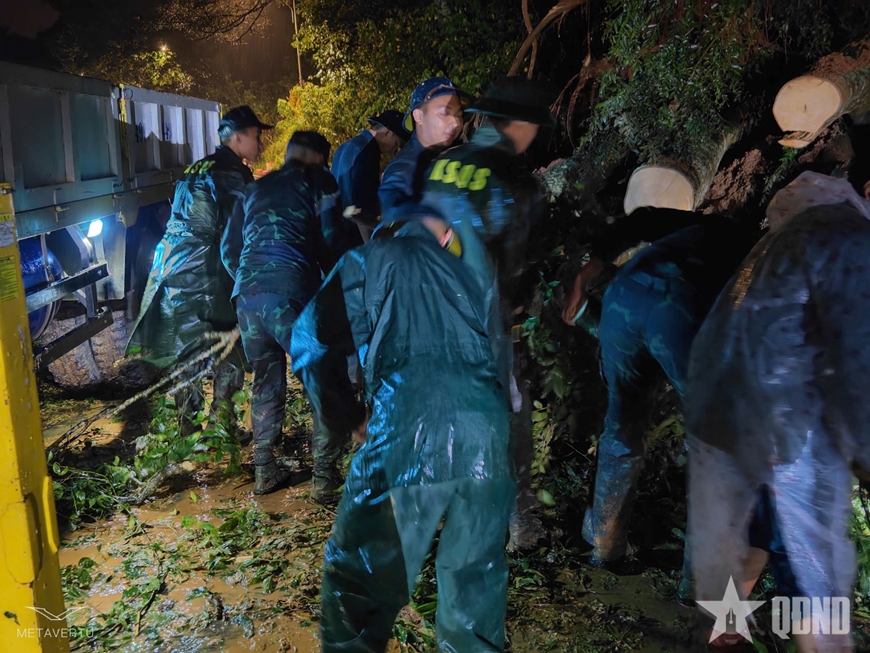 Trực tiếp chỉ huy tại hiện trường, Thượng tá Hà Bảo Lộc, Phó tham mưu trưởng Bộ CHQS tỉnh Lâm Đồng cho biết, ngay sau khi nhận được tin báo, đơn vị đã huy động 25 cán bộ, chiến sĩ cùng với các phương tiện cơ động xuống hiện trường. Với các thiết bị như máy cưa, máy xúc, cuốc, xẻng…, các cán bộ, chiến sĩ cùng với các lực lượng có mặt tiến hành cưa dọn cây gãy đổ và đất đá tràn ra mặt đường nhằm bảo đảm thông đèo trong thời gian nhanh nhất.