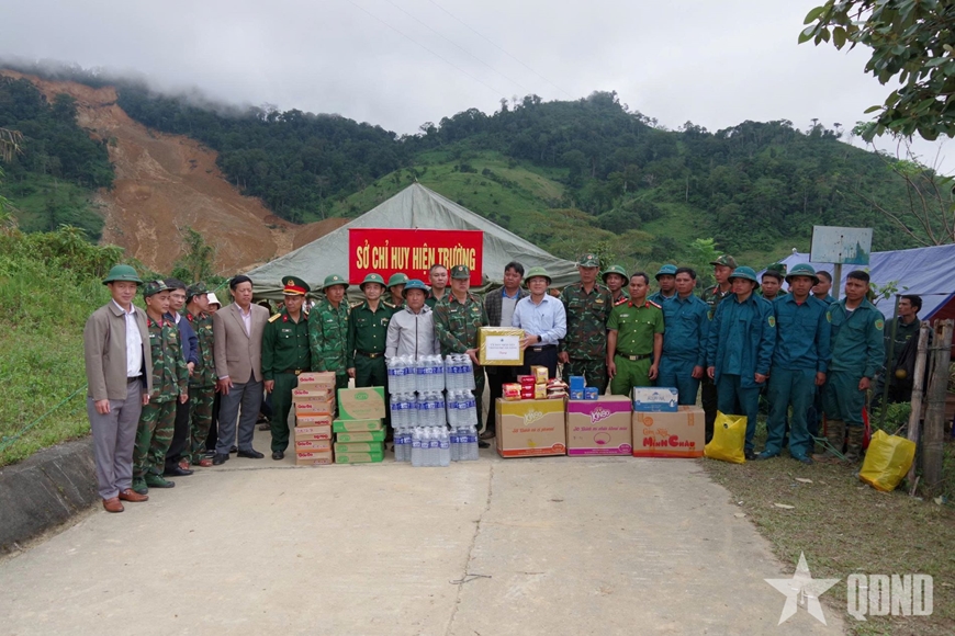 | Đồng chí Trần Nam Hưng, Phó chủ tịch UBND TP Đà Nẵng tặng quà lực lượng làm nhiệm vụ tại Sở chỉ huy hiện trường tìm kiếm các nạn nhân tại xã Hùng Sơn. |
