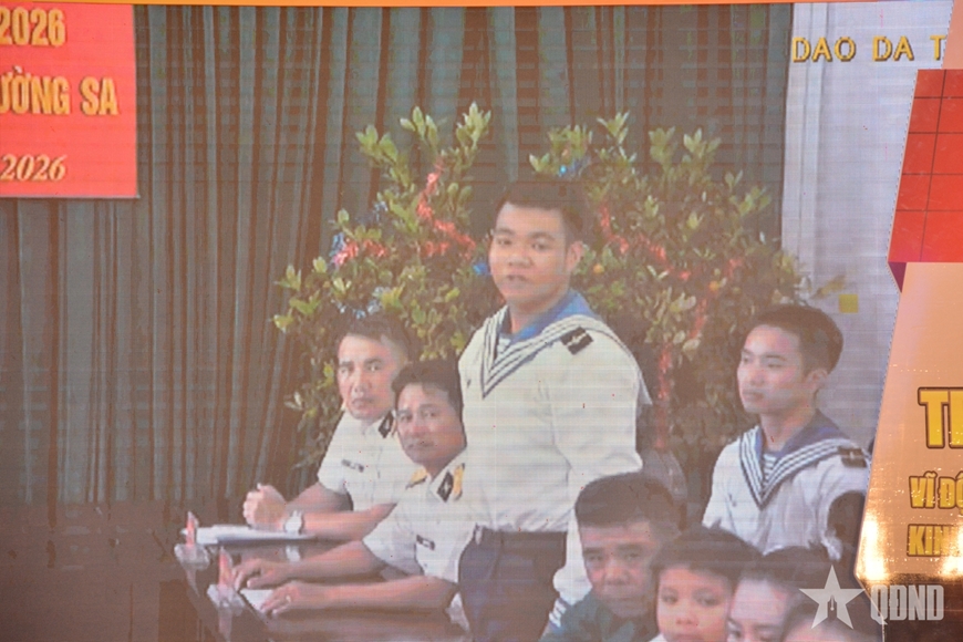 Tại điểm cầu đảo Trường Sa, lãnh đạo tỉnh đã nghe báo cáo về công tác phối hợp lực lượng, khí thế đón xuân và quyết tâm hoàn thành nhiệm vụ của quân dân Trường Sa.