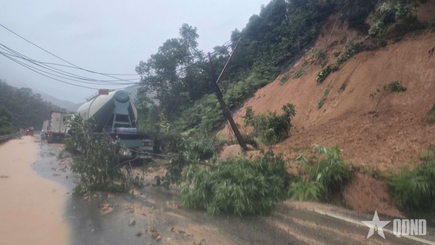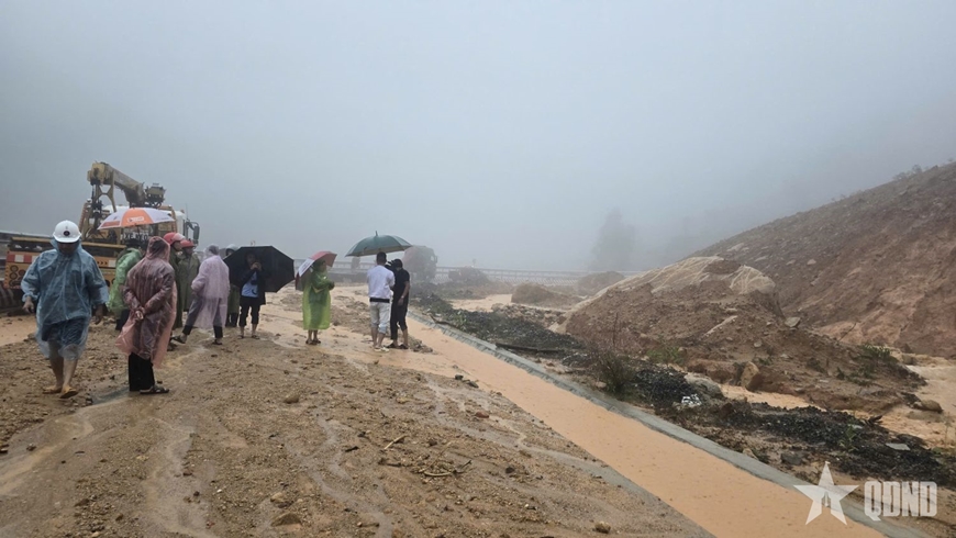 | Hiện trường vị trí sạt lở đèo Khánh Lê, lúc 9 giờ sáng 17-11. |