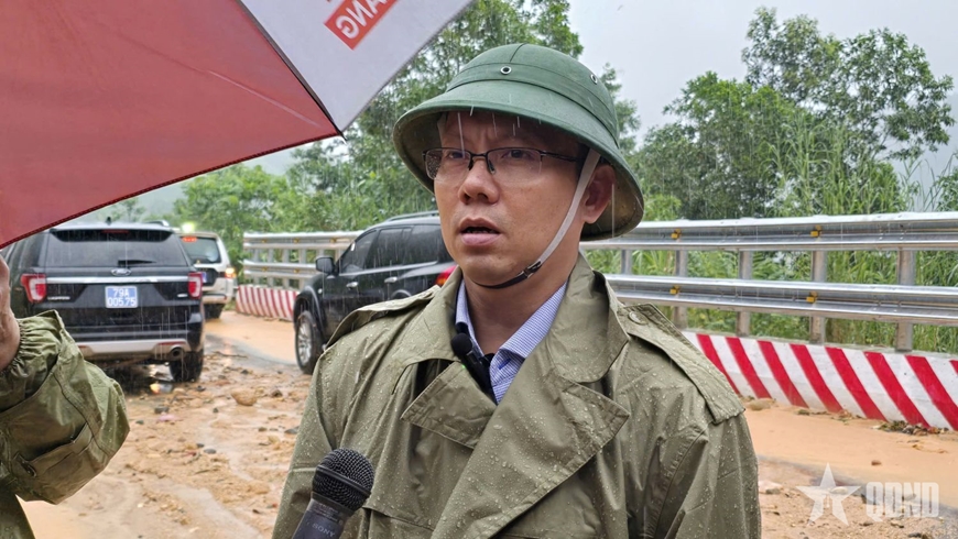 Đồng chí Nguyễn Thanh Hà, Phó chủ tịch UBND tỉnh Khánh Hòa chỉ đạo tại khu vực sạt lở đèo Khánh Lê, sáng 17-11.