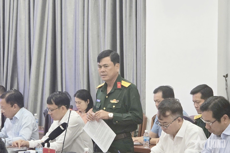 | Đại tá Nguyễn Túy, Chỉ huy trưởng Bộ CHQS tỉnh Khánh Hòa phát biểu. |