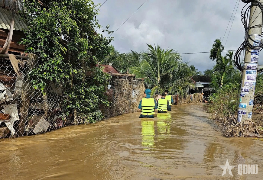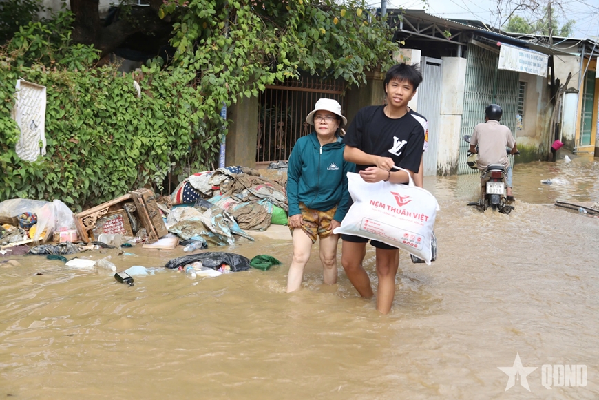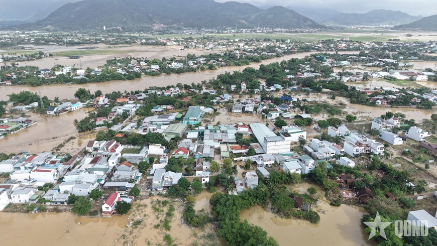 Hàng trăm hộ dân tại phường Tây Nha Trang (Khánh Hòa) chìm trong biển nước sau mưa lớn kéo dài. Các lực lượng Quân đội, Công an, dân quân cùng phương tiện chuyên dụng được huy động tối đa xuyên ngày, xuyên đêm ứng cứu nhân dân.