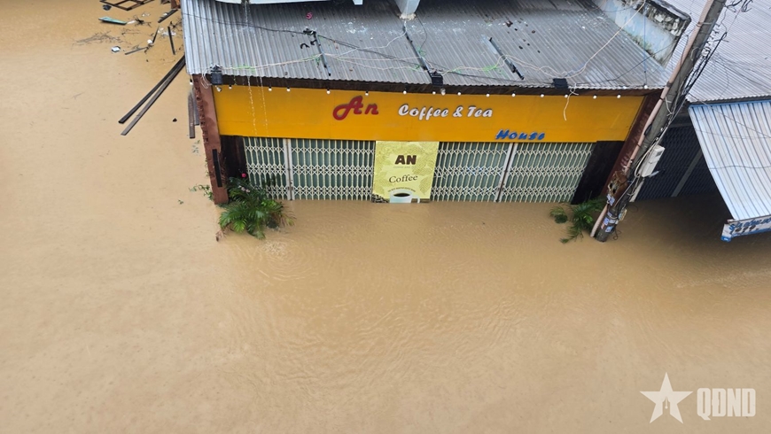 | Một quán cà phê dưới vòng xoay Ngọc Hội trên đường 23-10 khi ngập nước hôm 20-11... |