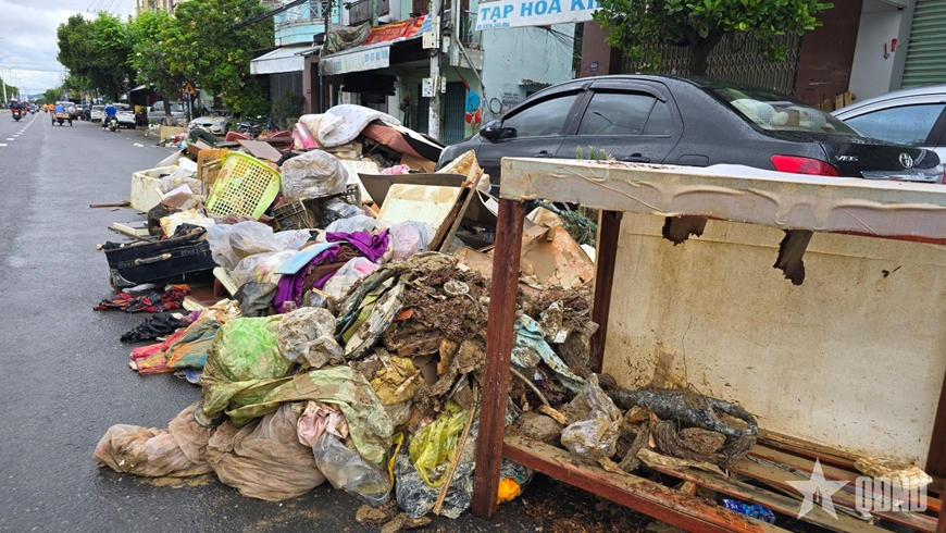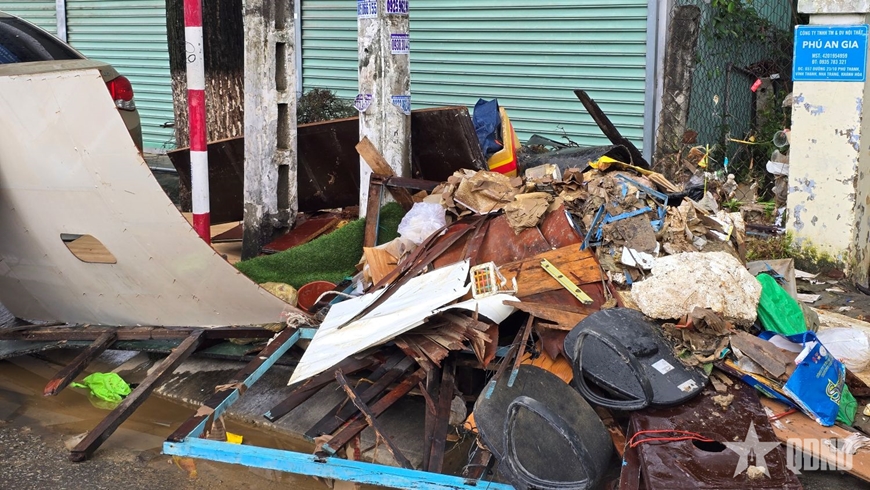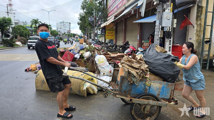 Tại tuyến đường 23-10, một trong những tuyến chính của Nha Trang, nơi bị ngập lụt sâu, ngổn ngang những đống rác khổng lồ, do người dân thu dọn đổ ra đường vì các con hẻm, khu phố không còn chỗ để chứa. Các lực lượng chức năng, vệ sinh môi trường thu gom rác; cứu hộ cứu nạn hoạt động "hết công suất" để đưa những chiếc xe chết máy về gara; còn người dân thì mong chờ có nước sạch để dọn dẹp, sinh hoạt, khắc phục hậu quả lũ lụt trong những ngày tới.