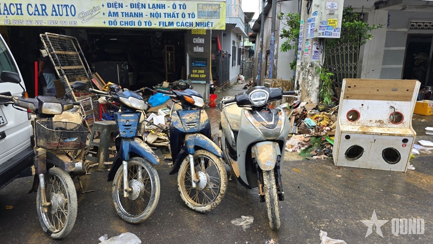 Phường Tây Nha Trang, một trong những "rốn lũ" của tỉnh Khánh Hòa, đến sáng 22-11 nước đã rút hết, song khung cảnh tan hoang, bùn đất tanh nồng, người dân hối hả dọn dẹp lại nhà cửa.