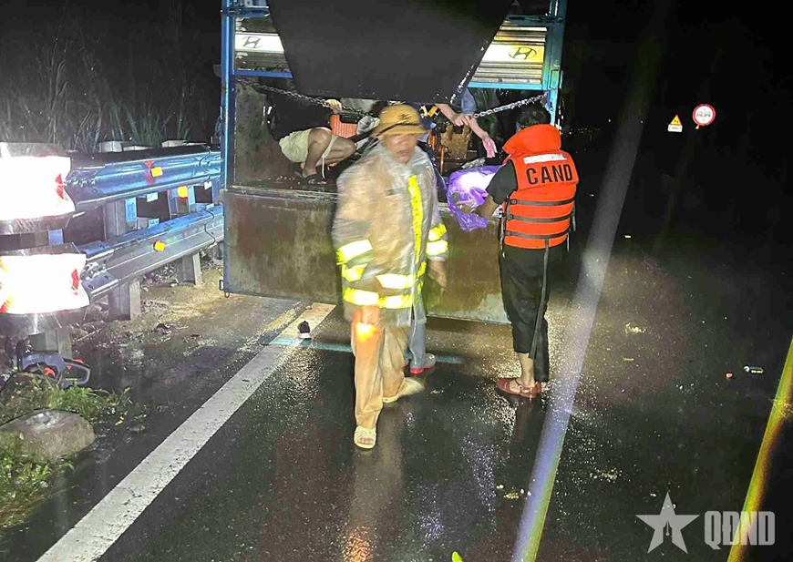 Đất đá từ taluy dương bất ngờ đổ ập xuống, trúng trực diện vào bên phải xe khách. Sự việc khiến phương tiện bị hư hỏng nặng và nhiều hành khách mắc kẹt bên trong. Đến khoảng 0 giờ ngày 17-11, lực lượng chức năng mới tiếp cận được khu vực xảy ra tai nạn.
