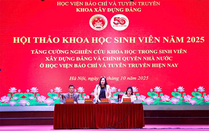 Chiều 22-10, Khoa Xây dựng Đảng, Học viện Báo chí và Tuyên truyền tổ chức Hội thảo khoa học sinh viên 2025 với chủ đề “Tăng cường nghiên cứu khoa học trong sinh viên xây dựng Đảng và Chính quyền Nhà nước ở Học viện Báo chí và Tuyên truyền hiện nay”.