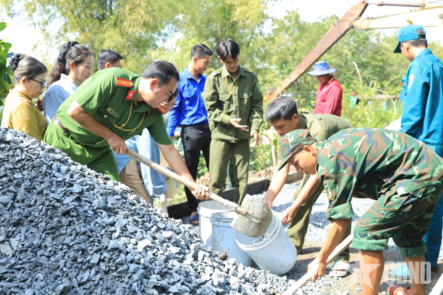Các lực lượng cùng tham gia thực hiện công trình. Ảnh: THÀNH HƯNG |