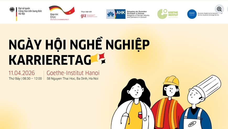Ngoài ra, Ngày hội nghề nghiệp được tổ chức vào sáng 11-4 tại Viện Goethe Hà Nội sẽ là cơ hội để các bạn trực tiếp tìm hiểu về các cơ hội đào tạo nghề, việc làm và học tập tại Đức.