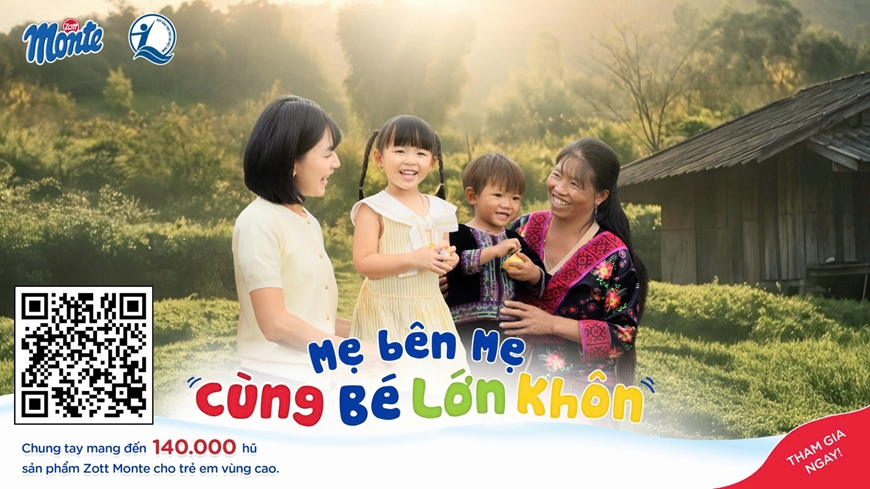 Theo đó, mỗi lượt chia sẻ bài viết về chương trình sẽ đóng góp vào Quỹ dinh dưỡng “Zott Monte - Cùng bé lớn khôn 2025” 1 hũ váng sữa Monte. Kết quả chiến dịch gây quỹ sẽ là động lực để Zott Monte triển khai thêm nhiều hoạt động hỗ trợ dinh dưỡng nhiều khu vực khác trên toàn quốc trong những năm tiếp theo. Chương trình Quỹ dinh dưỡng “Zott Monte - Cùng bé lớn khôn” góp phần hiện thực hóa mục tiêu không trẻ em nào bị bỏ lại phía sau, mọi trẻ em đều nhận được chăm sóc bằng yêu thương và dinh dưỡng đủ đầy để lớn khôn, hạnh phúc không phân biệt vùng miền.