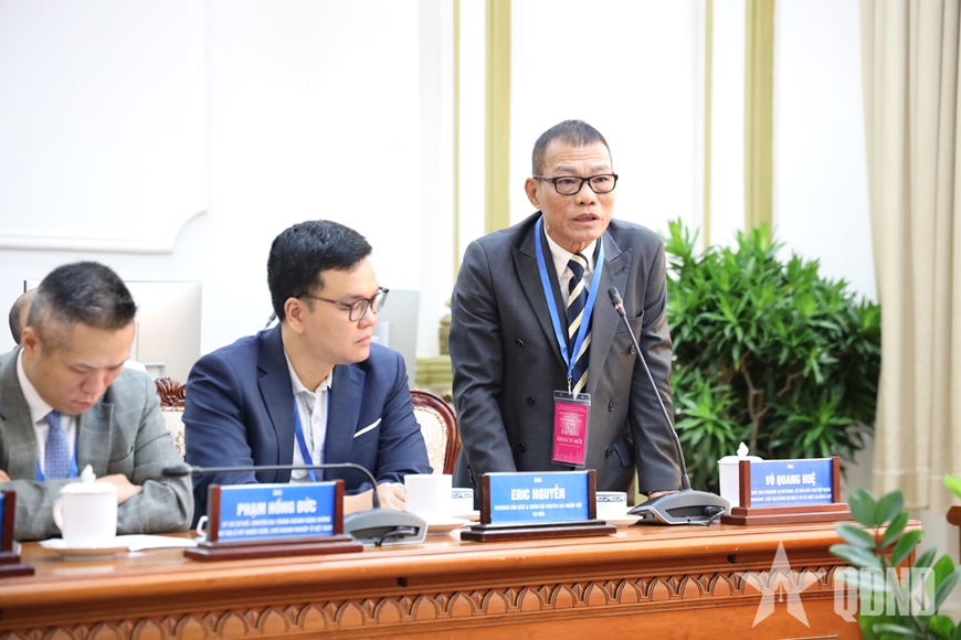 | Ông Võ Quang Huệ, Chủ tịch FoundryAI Vietnam, Thành viên Hội đồng Trường Đại học Việt - Đức (VGU), Chủ tịch Danh dự Hội Ô tô và Thiết bị Động lực TP Hồ Chí Minh chia sẻ kinh nghiệm chuyển đổi số từ quốc tế. |