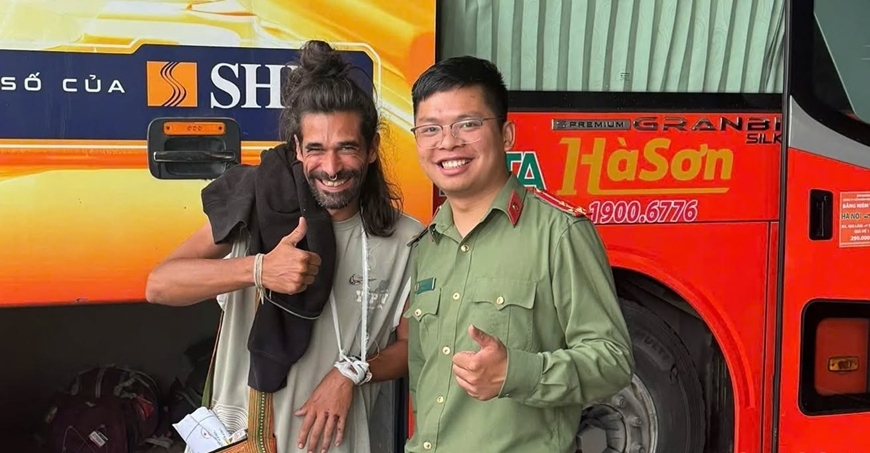 | Anh Albert cảm ơn Công an xã Y Tý và người dân địa phương đã tận tình hỗ trợ khi bị tai nạn giao thông. Ảnh: Báo Lào Cai |