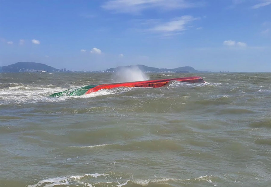 | Sà lan Long An 05553 bị nạn ở vùng neo Vũng Tàu. |