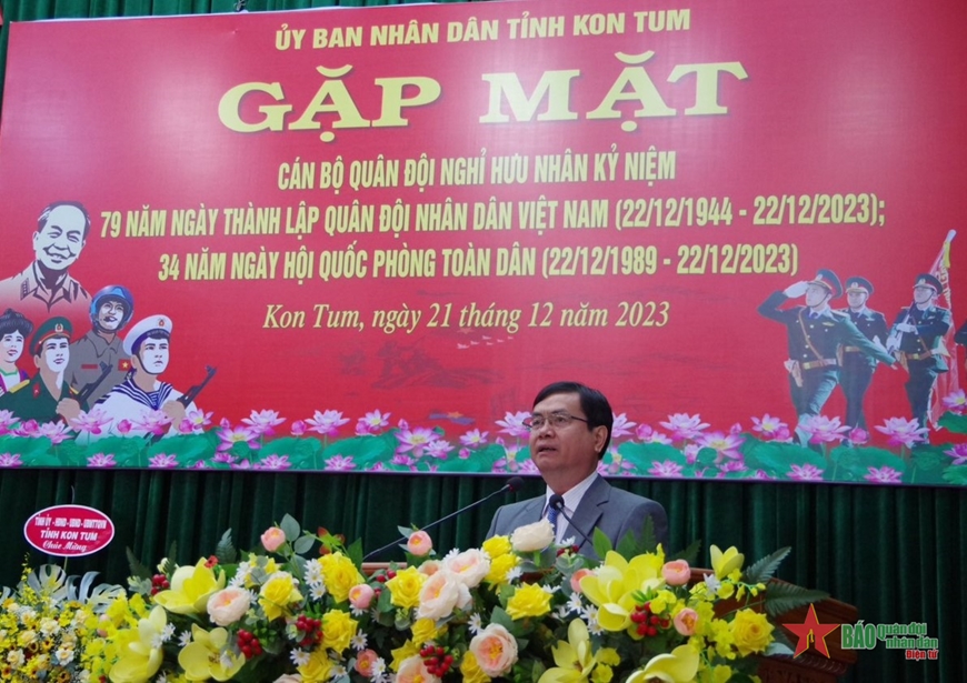 Phó chủ tịch UBND tỉnh Kon Tum đề nghị các các cán bộ quân đội đã nghỉ hưu tiếp tục phát huy truyền thống Bộ đội Cụ Hồ, truyền thống vẻ vang của Quân đội, tuyệt đối trung thành với Đảng và nhân dân; triển khai thực hiện hiệu quả Nghị quyết Đại hội Đảng các cấp và nhiệm vụ quân sự, quốc phòng; tham gia xây dựng khu vực phòng thủ tỉnh, huyện vững chắc, đặc biệt là xây dựng cơ sở chính trị, xây dựng lực lượng vũ trang vững mạnh, toàn diện; kết hợp chặt chẽ và hiệu quả giữa nhiệm vụ phát triển kinh tế, văn hóa, xã hội, công tác đối ngoại với bảo đảm quốc phòng - an ninh.