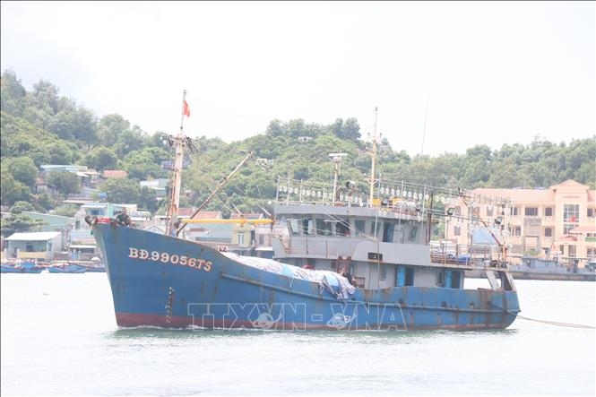 | Tàu BĐ 99056 TS lai dắt tàu bị nạn vào bờ. Ảnh: Sỹ Thắng - TTXVN |