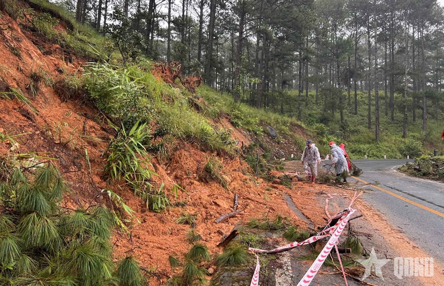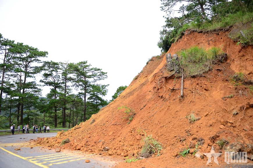 | Sạt lở trên đèo D'ran thuộc Quốc lộ 20 đoạn qua phường Xuân Trường, tỉnh Lâm Đồng. |