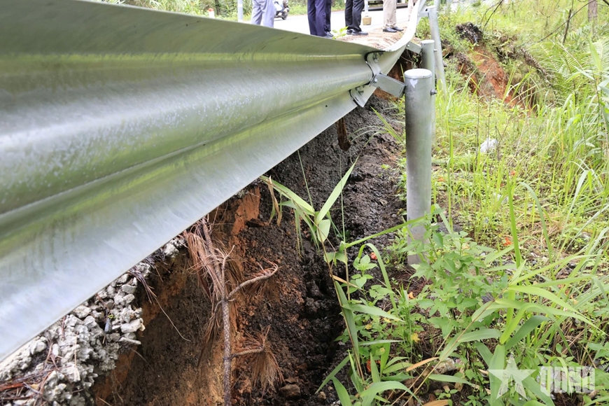 Tại hiện trường, vị trí sạt trượt kéo dài khoảng 20m, phía ta-luy âm bị sụt lún tạo hàm ếch, tiềm ẩn nguy cơ mất an toàn giao thông.