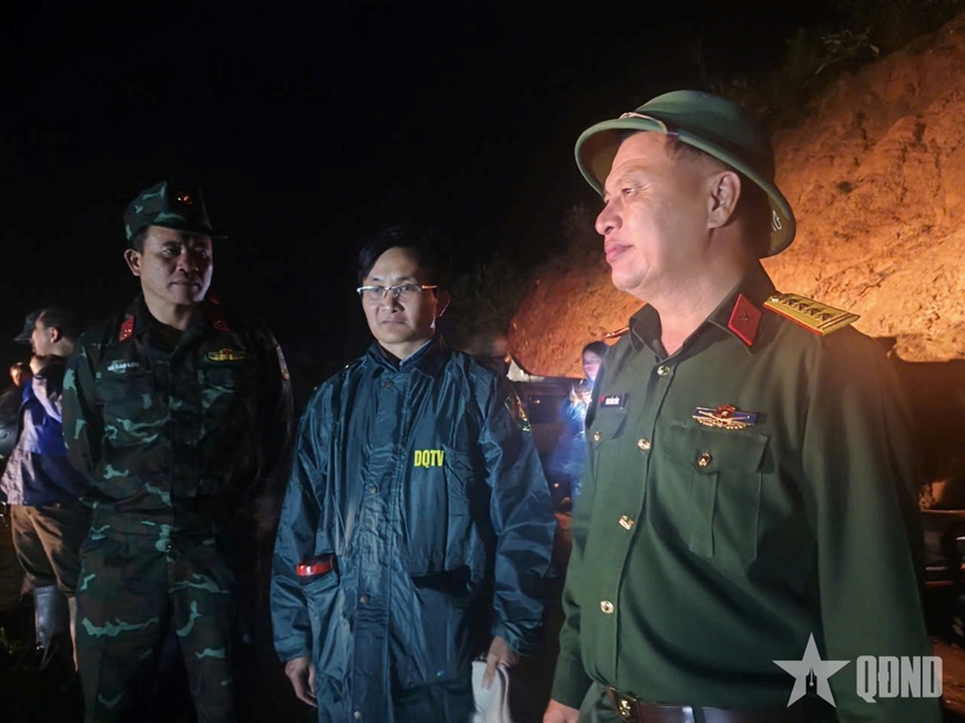 Đại tá Đinh Hồng Tiếng, Chỉ huy trưởng Bộ CHQS tỉnh Lâm Đồng (phải) chỉ huy công tác ứng phó tại hiện trường.