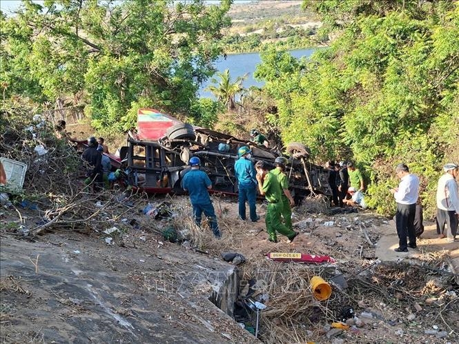 Hiện trường vụ tai nạn tại tỉnh Lâm Đồng. Ảnh: TTXVN