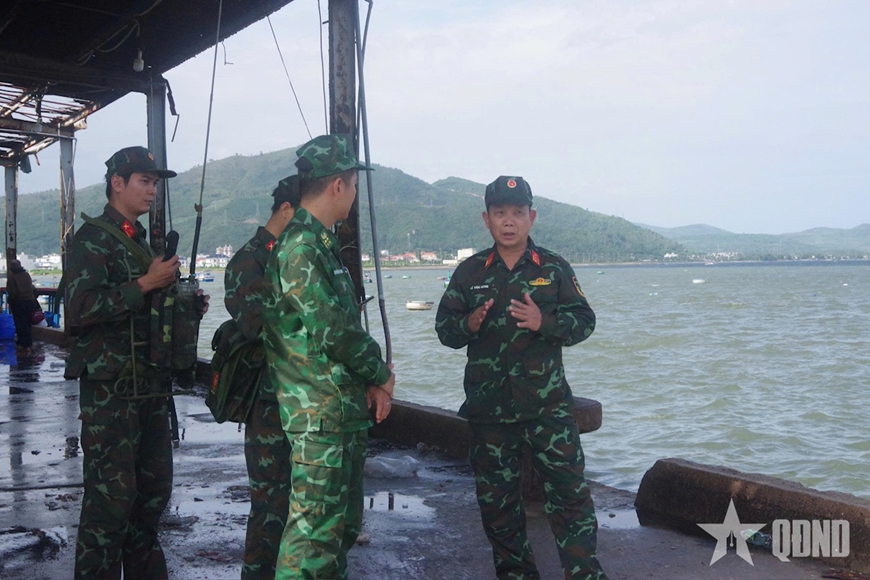 Đại tá Lê Văn Hùng (ngoài cùng, bên phải), Phó chỉ huy trưởng kiêm Tham mưu trưởng Bộ CHQS tỉnh Đắk Lắk giao nhiệm vụ cho lực lượng phòng, chống bão.
