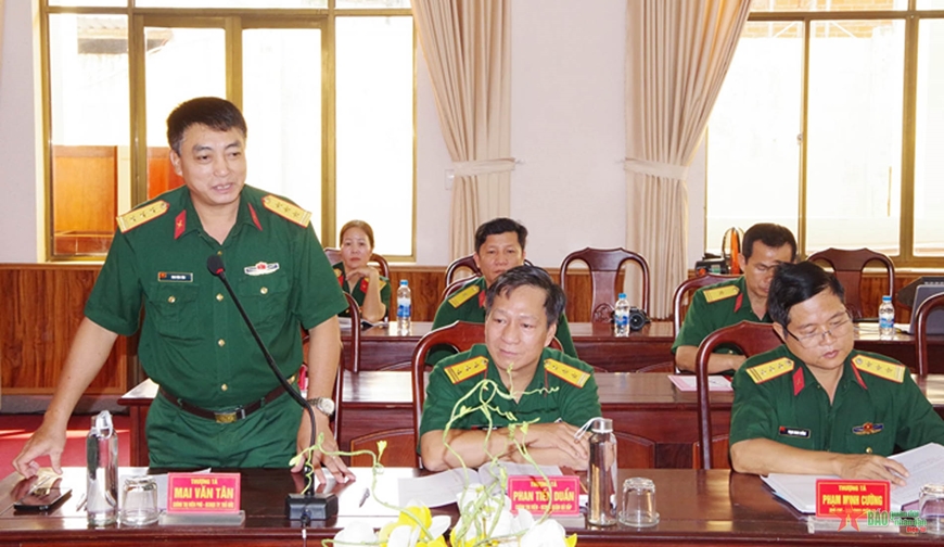 Lãnh đạo Ban CHQS TP Thủ Đức, TP Hồ Chí Minh phát biểu tại hội nghị. |