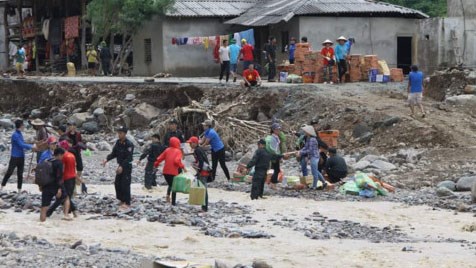 Ngày 6-8, các lực lượng công an, quân đội, đoàn thanh niên tình nguyện tiếp tục vận chuyển các nhu yếu phẩm thiết yếu như: Gạo, quần áo, chăn màn, nồi niêu, nước uống bằng cách tăng bo vừa bằng xe máy vừa bằng sức người ứng cứu cho bà con. Công tác khắc phục hậu quả mưa lũ tại đây hiện gặp nhiều khó khăn do mưa to, đường trơn lầy lội, giao thông còn ách tắc.