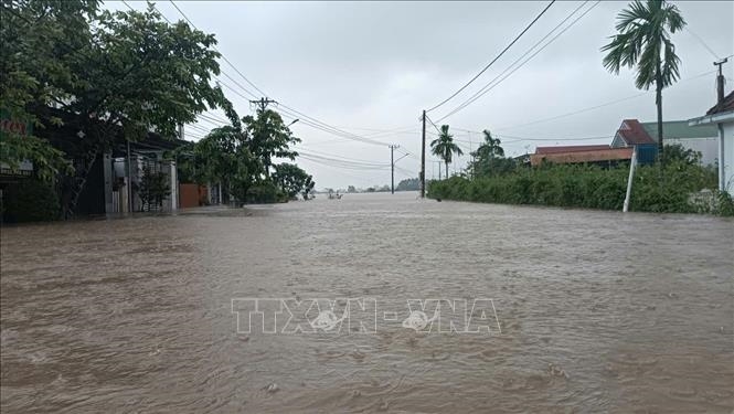 | Nước lũ ngập sâu khu dân cư ở phường Kim Trà, TP Huế. |