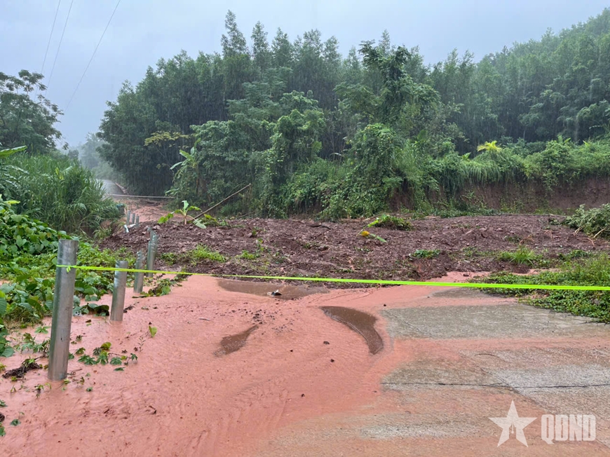 Mưa lớn làm đường Đông Trường Sơn đoạn qua địa phận xã Phước Trà bị sạt lở sáng 28-10.