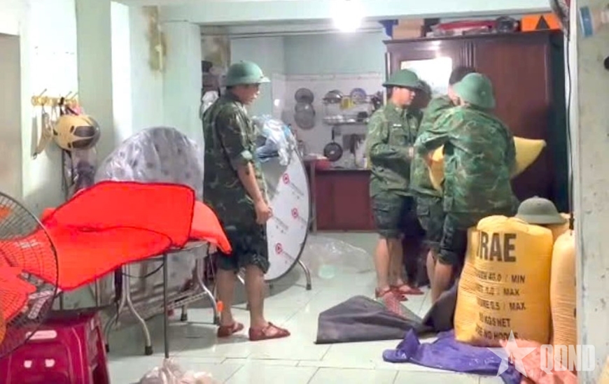 Cán bộ, chiến sĩ Đồn Biên phòng Non Nước (Ban chỉ huy Bộ đội Biên phòng TP Đà Nẵng) hỗ trợ nhân dân phường Ngũ Hành Sơn (phường Hòa Quý cũ) di chuyển tài sản lên cao tránh lũ.