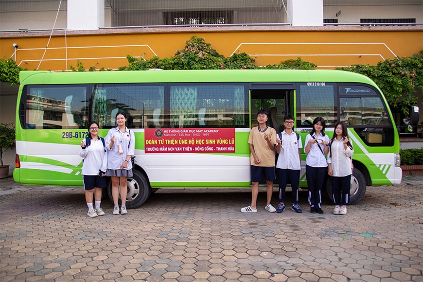 Nhờ hiệu quả truyền thông có nền nếp, toàn trường đã xây dựng được mô hình giáo dục lòng yêu nước, nghĩa đồng bào rất hiệu quả. Tiêu biểu cho mô hình ấy là việc gây quỹ thiện nguyện để ủng hộ đồng bào các vùng chịu nhiều thiệt hại của thiên tai, lụt bão. Đơn cử, sáng ngày 19-10, Trường THCS & THPT MAY đã tổ chức chương trình trao quà thiện nguyện tại Trường Mầm non Vạn Thiện, xã Nông Cống, tỉnh Thanh Hóa. Đây là điểm đến đầu tiên trong chuỗi hoạt động thiện nguyện mà nhà trường phối hợp cùng Hội cha mẹ học sinh thực hiện nhằm gây quỹ ủng hộ học sinh chịu ảnh hưởng của cơn bão số 10, 11, 12 và trận lũ lịch sử vừa qua tại một số tỉnh.