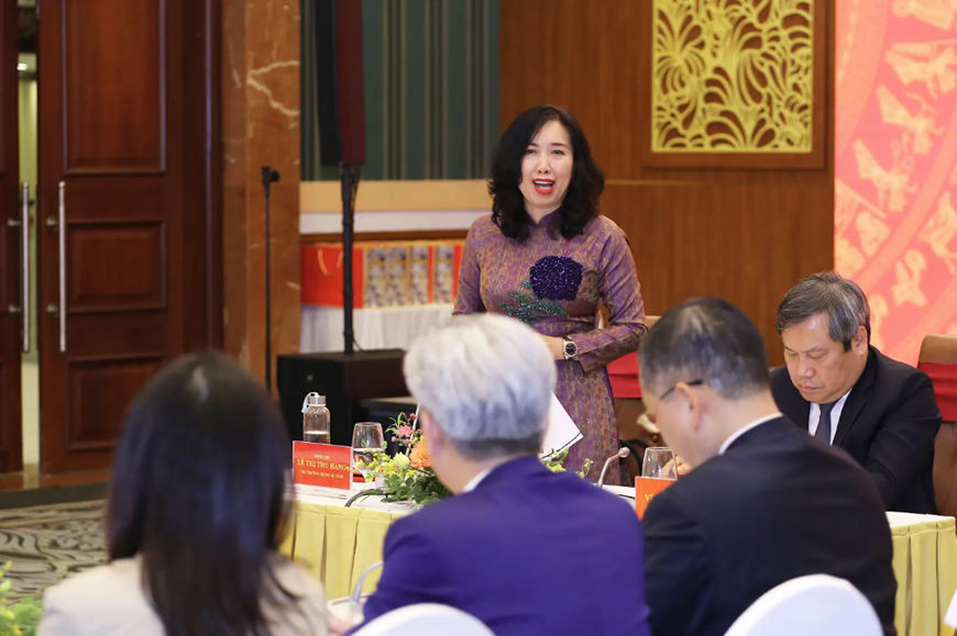 | Thứ trưởng Bộ Ngoại giao Lê Thị Thu Hằng phát biểu tại cuộc gặp. Ảnh: THÀNH LONG |
