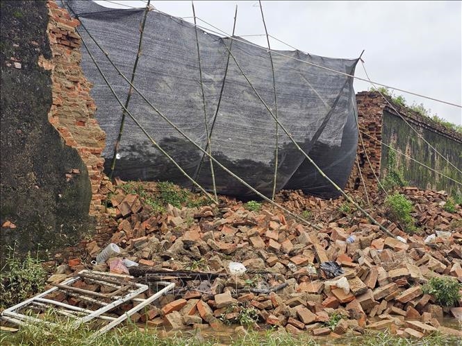 | Lượng lớn gạch tường Hoàng thành nằm ngổn ngang sau khi bị sập. |