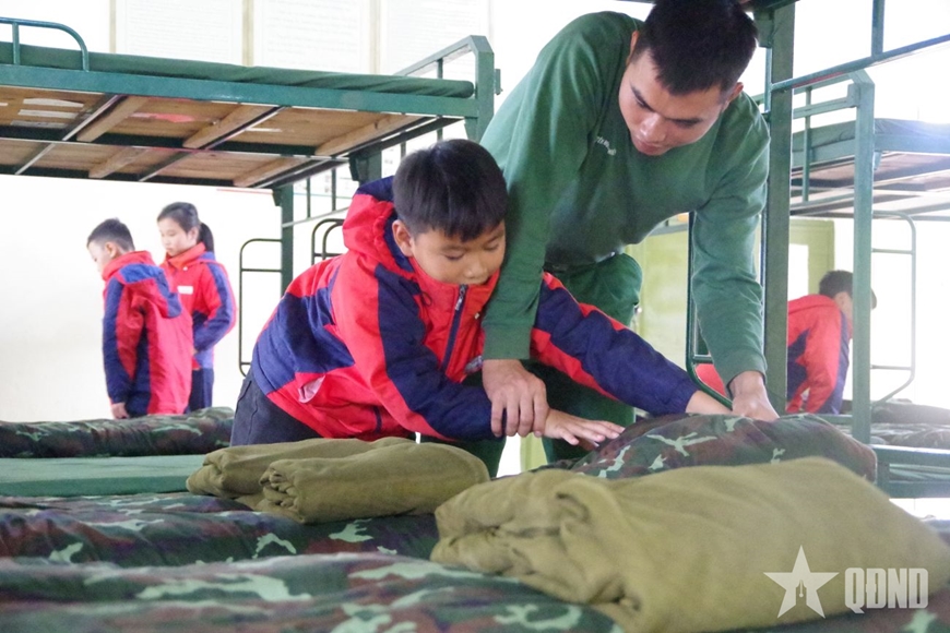 Từ cổng doanh trại, những hàng quân được sắp xếp thẳng tắp, tiếng khẩu lệnh mạnh mẽ vang lên đều đặn, cùng bước chân nhịp nhàng của chiến sĩ trên sân huấn luyện hay tham quan không gian ăn, ở của người lính đã tạo cho các em học sinh ấn tượng mạnh mẽ về nếp sống kỷ luật của bộ đội. Nhiều em lần đầu được trực tiếp trải nghiệm các hoạt động gấp chăn vuông góc, quan sát diễu duyệt đội ngũ của các chú bộ đội, …