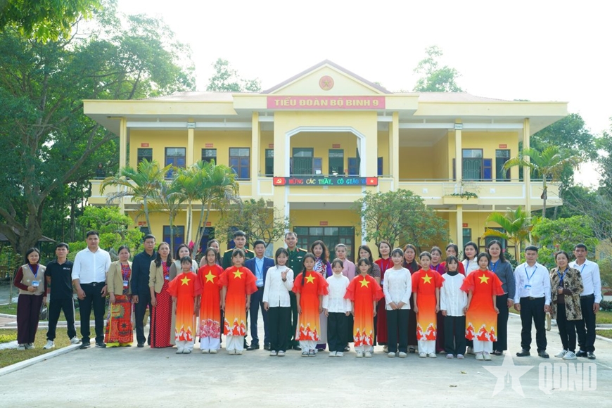 | Các thầy, cô giáo Trường Tiểu học Mai Sao và đại diện chỉ huy đơn vị. |
