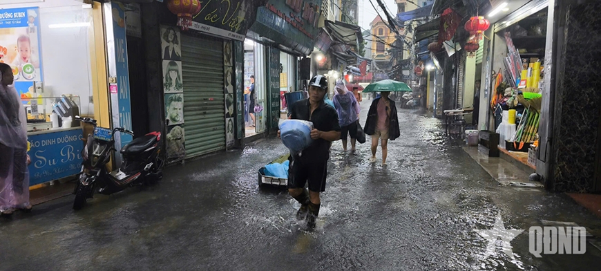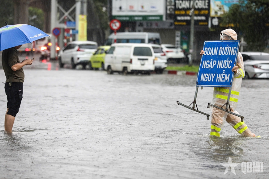 Dưới đây là một số hình ảnh của phóng viên Báo Quân đội nhân dân ghi nhận tại một số tuyến phố bị ngập trong sáng nay: