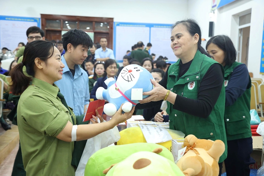| Ban tổ chức trao quà tặng người tham gia hiến máu tình nguyện. |