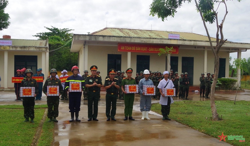 Thủ trưởng Cục Cứu hộ-Cứu nạn (Bộ Tổng Tham mưu Quân đội nhân dân Việt Nam) và Binh chủng Hóa học trao thưởng các lực lượng hoàn thành xuất sắc nhiệm vụ.