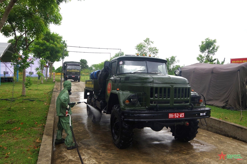 Xe ARS-14 sau khi hoàn thành nhiệm vụ tại trạm tiêu tẩy tổng hợp.