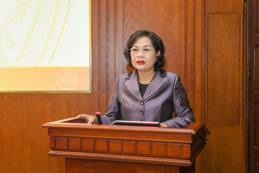 Thống đốc Ngân hàng Nhà nước Việt Nam Nguyễn Thị Hồng phát biểu tại buổi lễ.