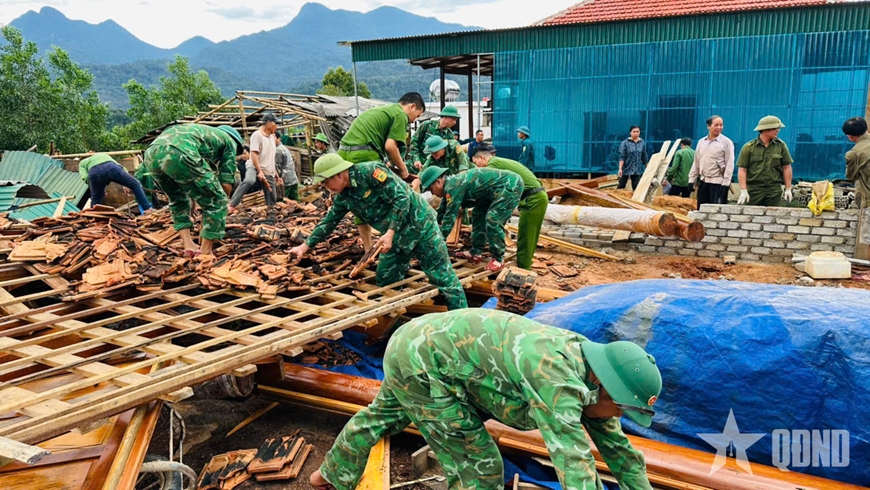 Ngày 6-10, Đồn Biên phòng Thông Thụ (Bộ đội Biên phòng tỉnh Nghệ An) đã huy động lực lượng phối hợp cùng chính quyền địa phương và nhân dân trên địa bàn xã Thông Thụ khẩn trương khắc phục hậu quả trận lốc xoáy.