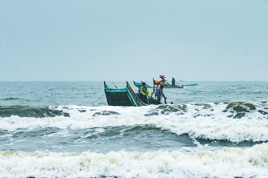 Từ khoảng 3 - 4 giờ sáng, ngư dân đã bắt đầu rẽ sóng ra khơi, thực hiện chuyến mở biển mang theo bao hy vọng. Tiếng máy tàu hòa cùng tiếng sóng, tiếng gọi nhau í ới tạo nên một nhịp sống tràn đầy năng lượng trên dải đất miền Trung.